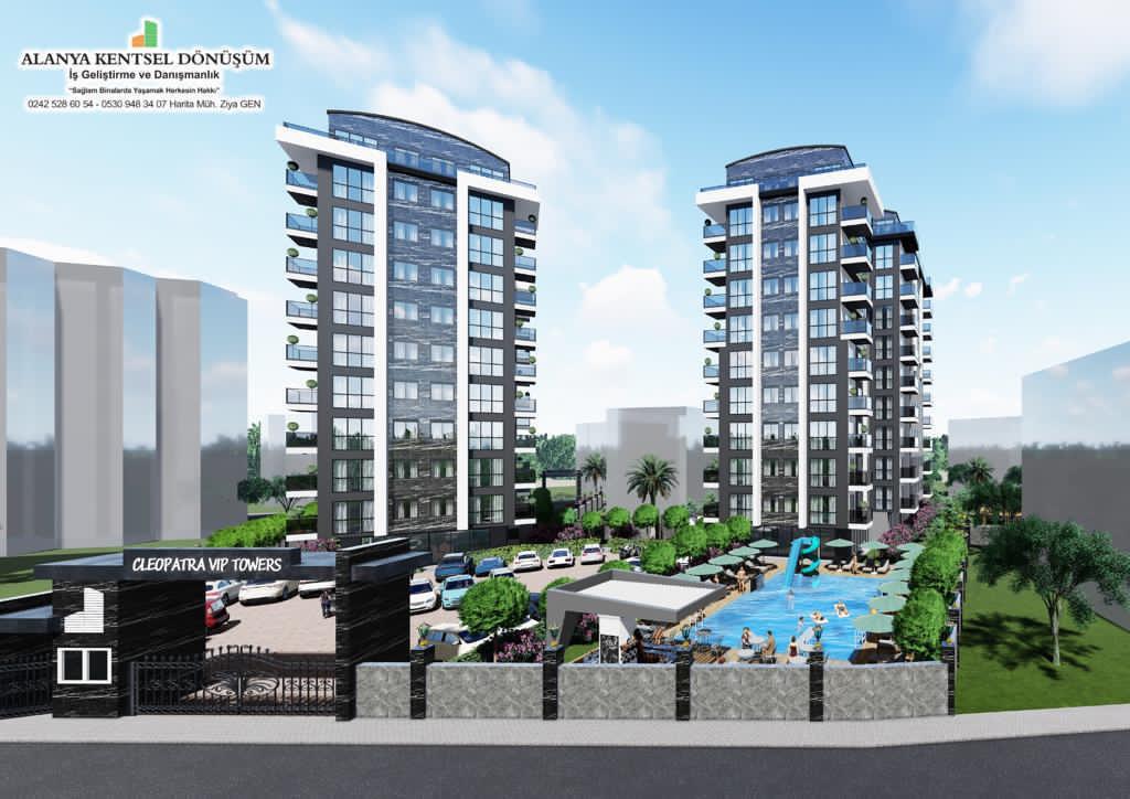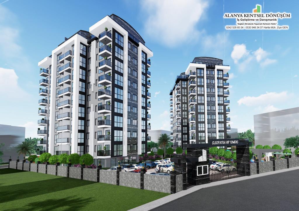 Kleopatra towers, consisting of 2 blocks and 100 flats in Antalya alanya kleopatra neighborhood, is an urban transformation project close to the sea and a hotel concept